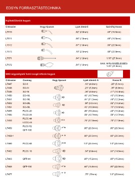 Hajlított/Döntött hegyek Hegy típusok Lyuk átmérő Szórófej Hossz