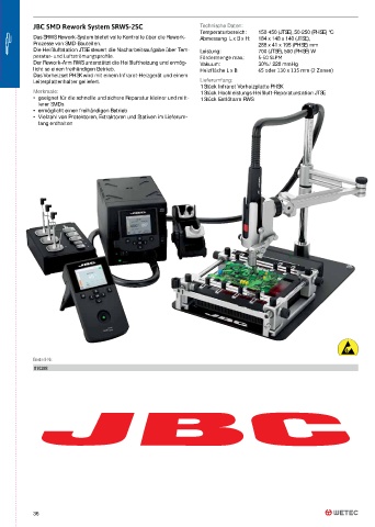 Das SRWS Rework-System bietet volle Kontrolle über die Rework- Abmessung L x B x H: 184 x 148 x 140 (JTSE),