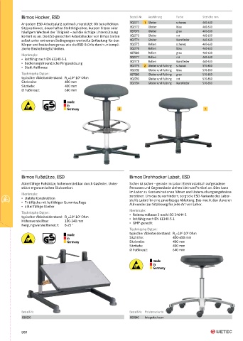 Bimos Hocker, ESD Bestell-Nr. Ausführung Farbe Sitzhöhe mm