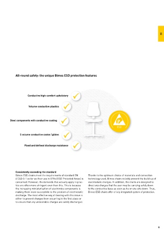 Surface Acc. to Bimos ESD chairs Bimos ESD chairs meet the requirements of standard EN Thanks to the optimum choice of materials and connection