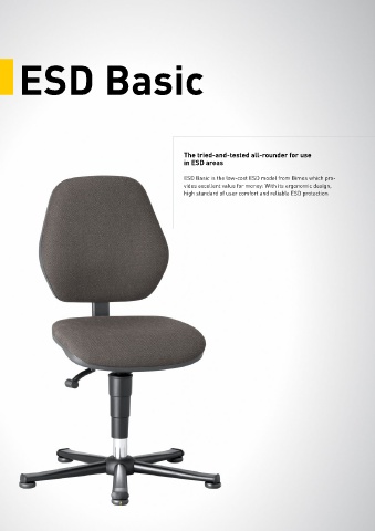 ESD Basic is the low-cost ESD model from Bimos which pro- system that ensures a discharge resistance in accordance with EN 61340-5-1, it has all