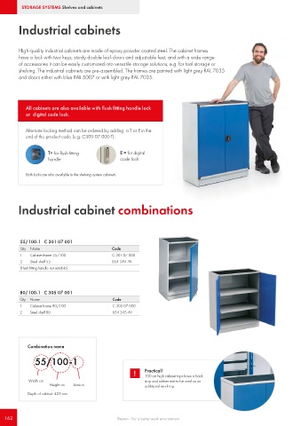 shelving. The industrial cabinets are pre-assembled. The frames are painted with light grey RAL 7035