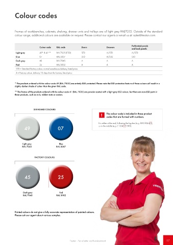 **The frames of the products ordered with the colour code 41 (RAL 7035) are powder coated with a light grey ESD colour, but there are non-ESD parts in