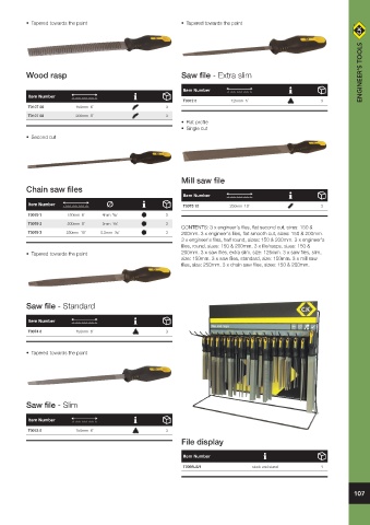 • Tapered towards the point • Tapered towards the point 200mm. 3 x saw fi les, extra slim, size: 125mm. 3 x saw fi les, slim,