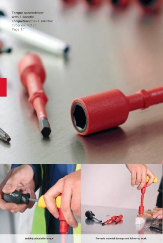 Torque screwdriver with T-handle TorqueVario -S T electric ® Order no. 43177 Page 171 Variably adjustable torque Prevents material damage and follow-up work.