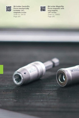 Bit holder CentroFix Bit holder MagicFlip Force mechanically Force magnetic with lockable 1/4", ring magnet, magnetic in box 1/4" in box Order no. 39133 Order no. 36800 Page 260 Page 260
