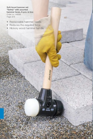 Soft-faced hammer set "Safety" with assorted hammer faces, 8-pcs. in box Order no. 44008 Page 324 • Replaceable hammer heads • Reduces the required force • Hickory wood hammer handle