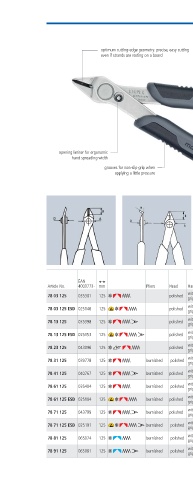Article No 003773 mm Pliers Head Handles Ø mm Ø mm Ø mm mm mm mm g