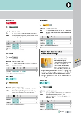Design: Torsion-style design to reduce premature wear, extra-hard, Application: Suitable for Pozidriv screws